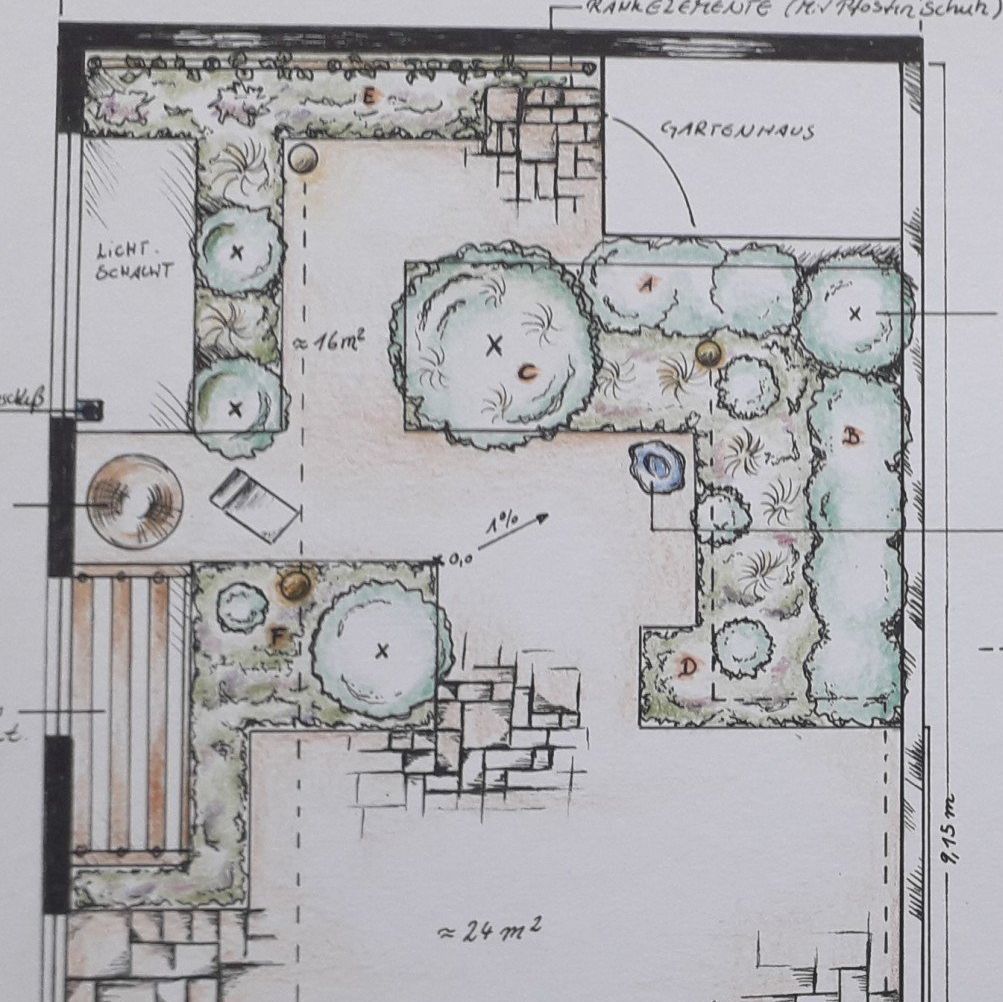 Gestaltung einer barrierefreien Aussenanlage mit soviel "Grün" wie möglich.