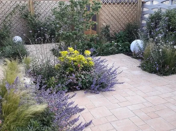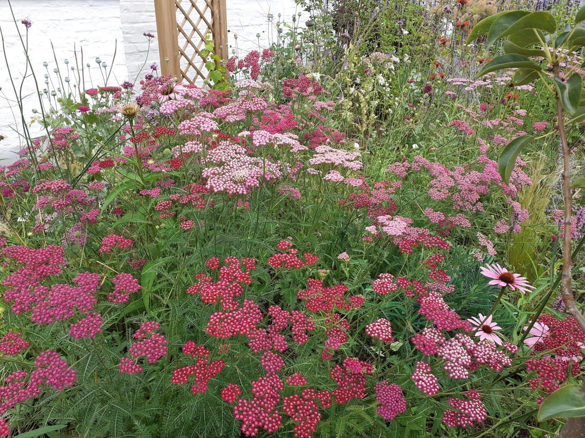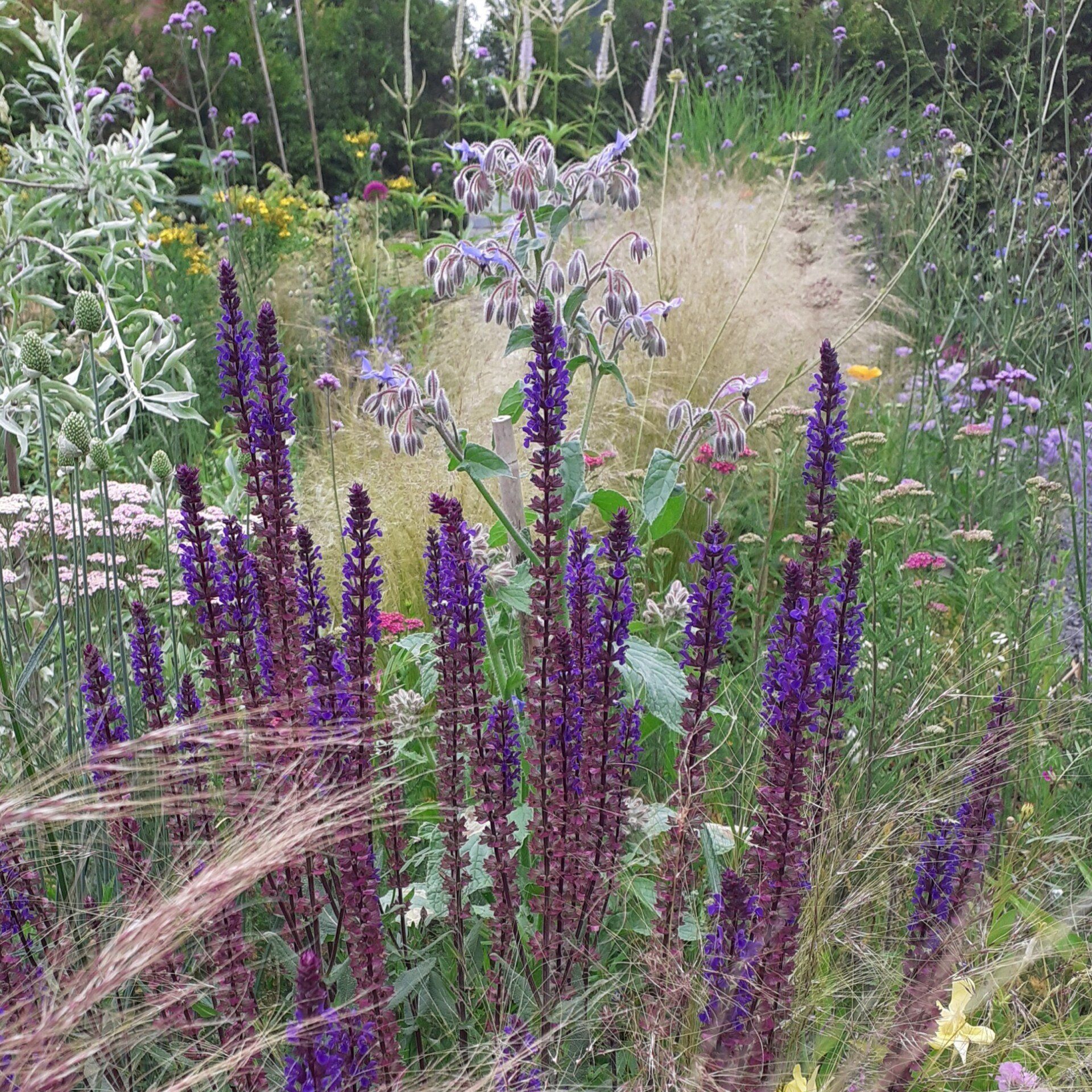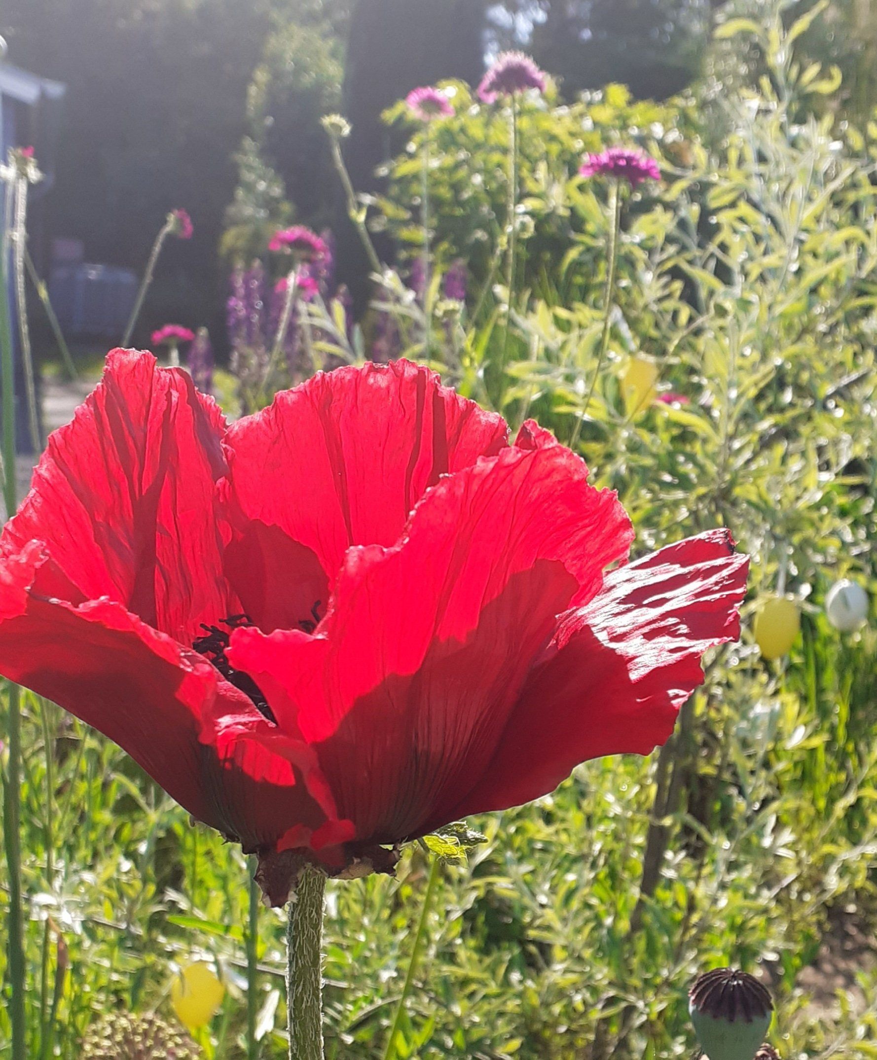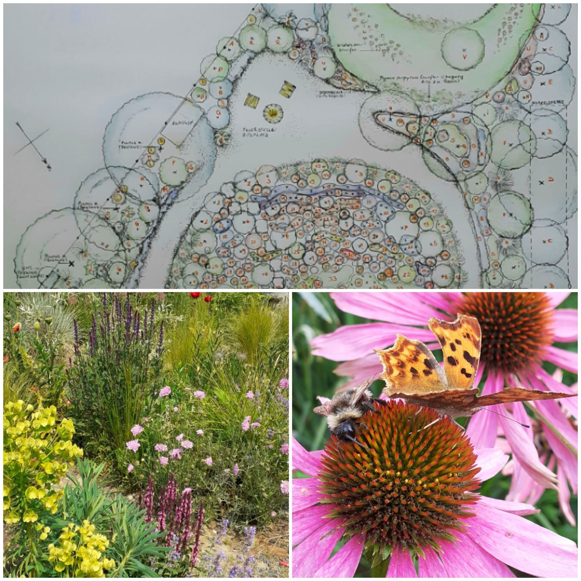 Gute Nachbarschaft, gerne ein wenig gemeinsam in schönem Ambiente vor der Hautür verweilen. Geschützt und doch mit guter Aussicht beleben diesen Ort nicht nur tolle Menschen, sondern auch Trockenheitskünstler unter den Stauden und Gehölzen.